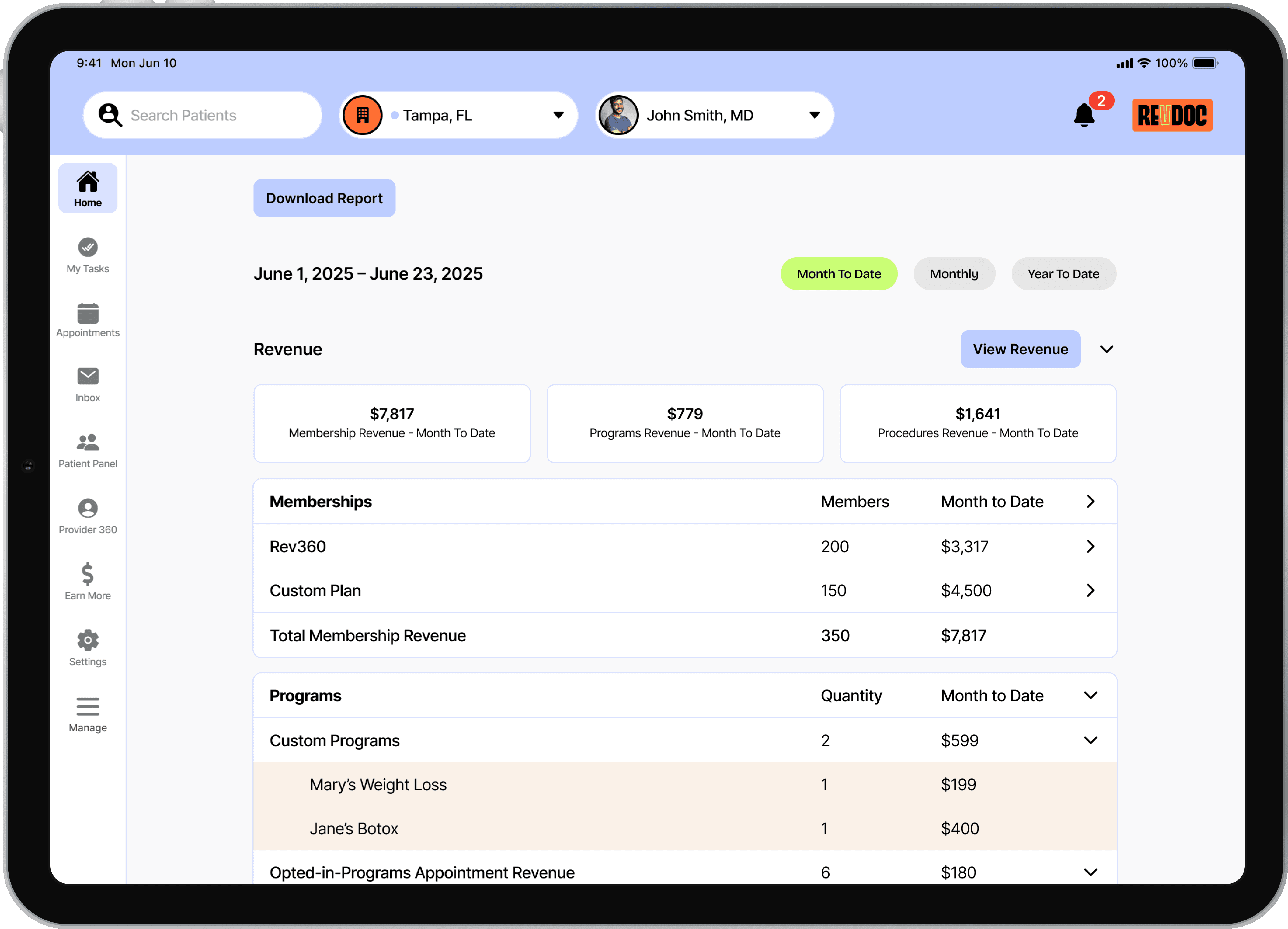 Earn per member, per month when you provide care for RevDoc members through the platform